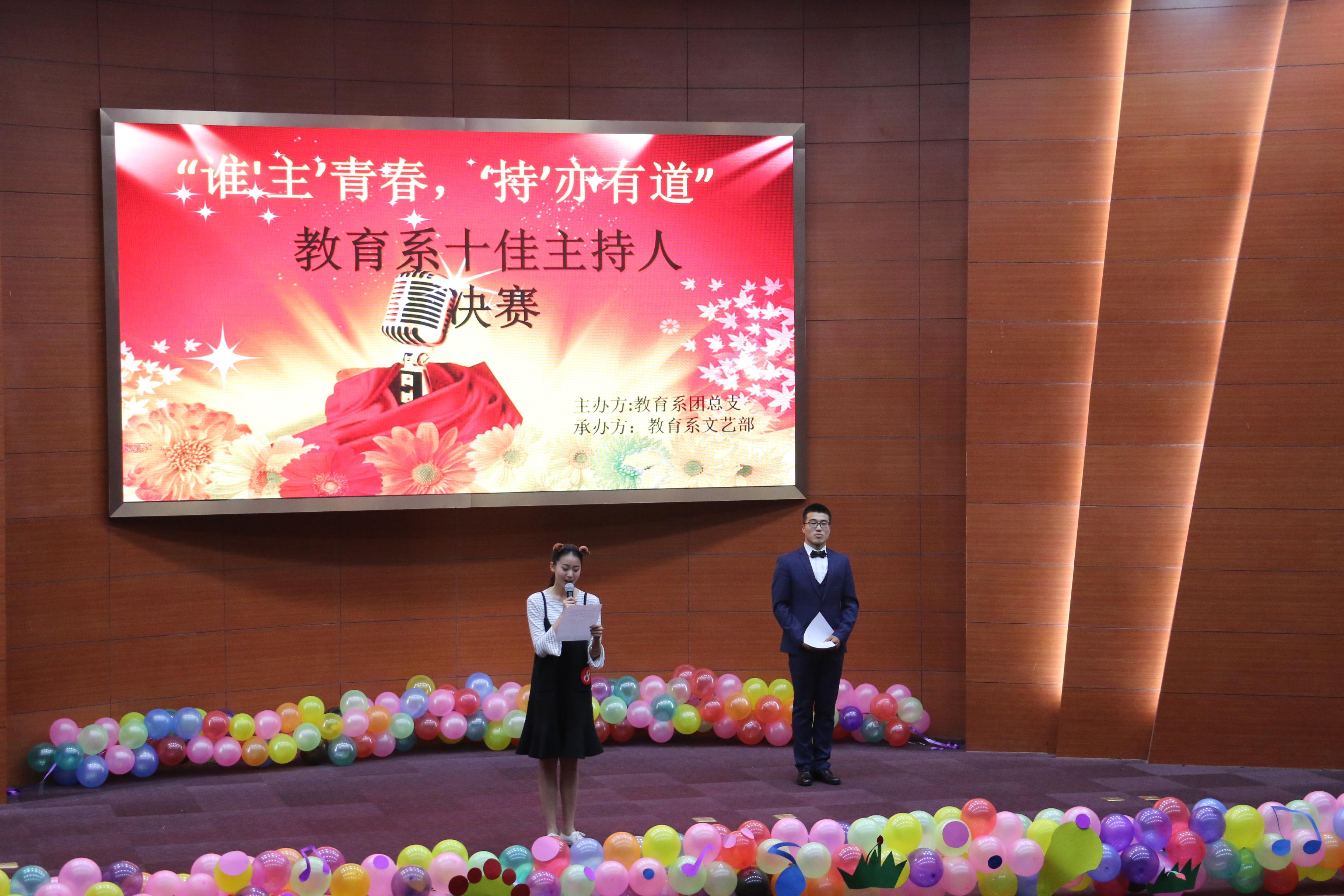 2018年4月10日18时30分,由教育系团总支主办,教育系文艺部承办的教育系十佳主持人比赛拉开序幕。教育系辅导员徐艳艳出席了本次比赛。