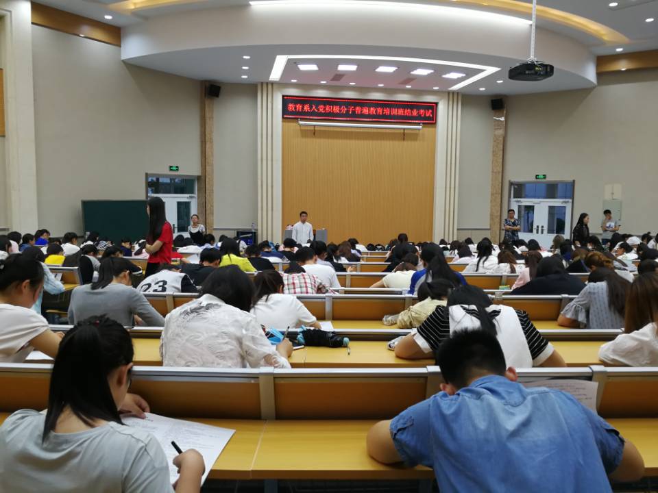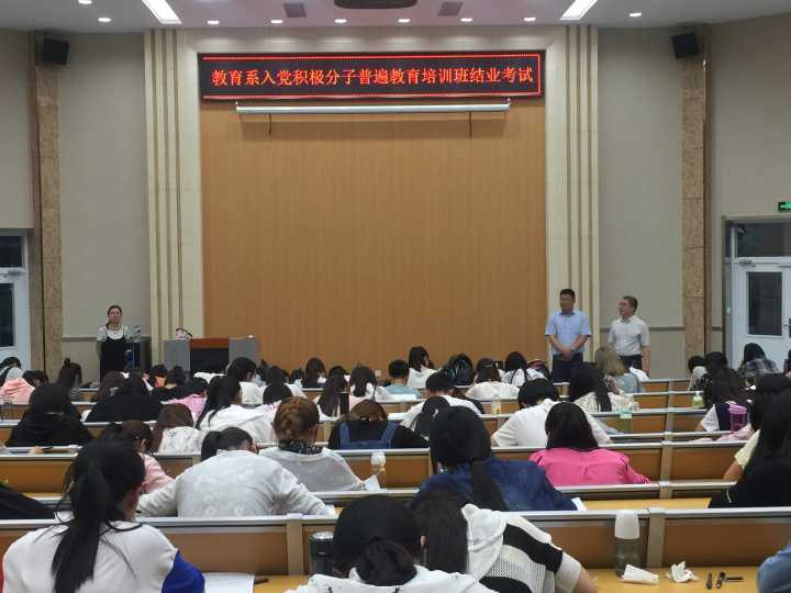 2017年5月18日晚6时30分,教育系第36期入党积极分子普通培训结业考试在教育系与计科系报告厅顺利进行,教育系老师及2014级部分学生干部参与了此次考试的监考工作。 考试期间,学员们严格遵守考场纪律,根据党课培训内容,联系自身实际,以党章为依据,认真答题。考试在公平、公正的氛围下进行。 此次结业考试考风严正,纪律严明,旨在检验入党积极分子党课培训结果,使他们更加深入地了解党,早日成为党的生力军中一员,为社会主义现代化建设贡献自己的一份力量。考试不仅为党的发展注入新的血液,而且为壮大党员队伍奠定了基础。同时,坚定了大家加入党的决心与信心,为提高自身修养提供了途径。