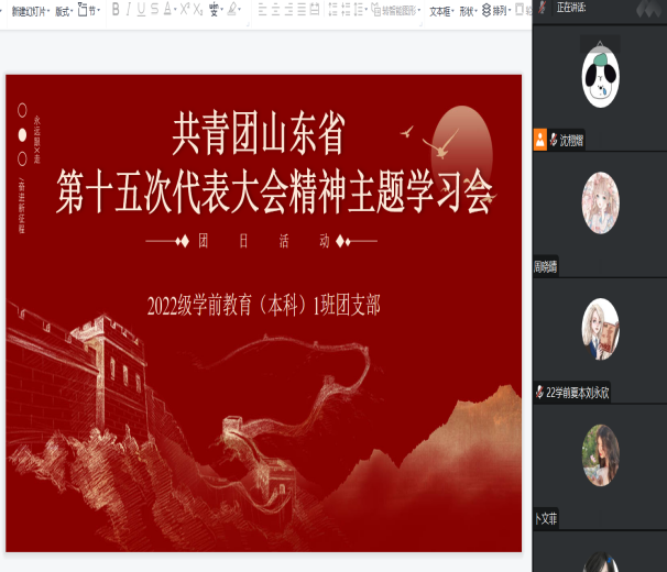 为引领青年学习贯彻共青团山东省第十五次代表大会精神,鼓励青年开展“学习精神、领悟内涵”的行动,2023年2月18日,教师教育学院开展了“学习共青团十八届七中全会精神、学习共青团山东省第十五次代表大会精神”专题学习会。
