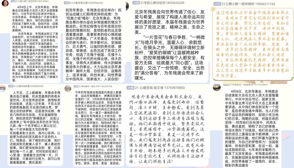 4月9日下午,教师教育学院组织全体学生以线上的方式观看“北京冬奥会冬残奥会总结表彰大会”,引导广大青年学生践行北京冬奥精神,坚定文化自信,增强爱国主义情怀。