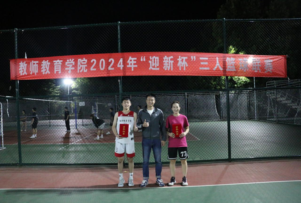 鸣奏青春旋律,书写运动乐意。为丰富校园生活,积极推动我校学生参与体育活动。9月22日,教师教育学院2024年“迎新杯”三人篮球赛在我校东篮球场圆满落幕。本次比赛邀请了山东华勤集团篮球队队长陈孝山、副队长陈孝水及部分队员,辅导员、体育部分管老师杨霖出席活动。