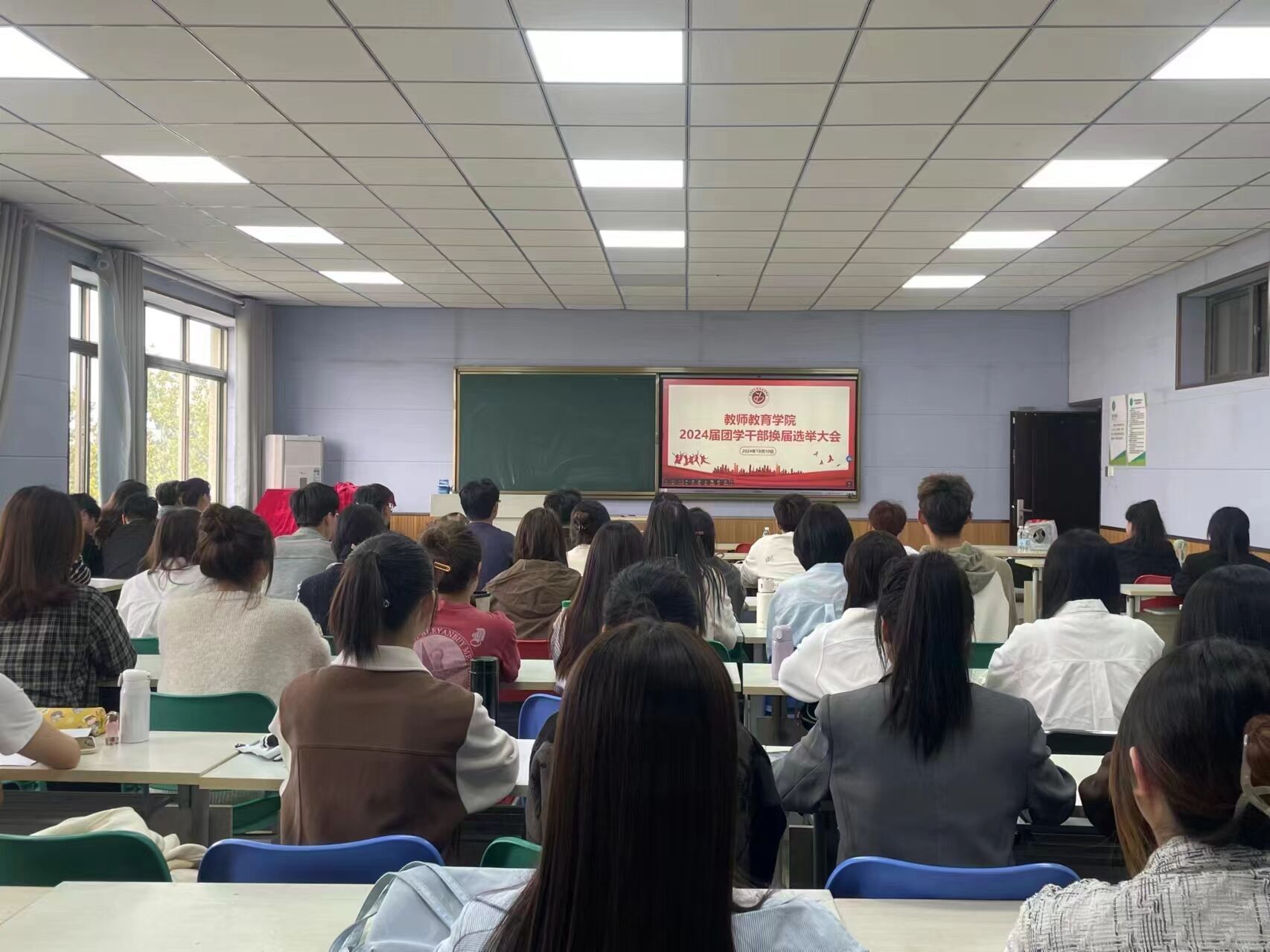 为加强学生干部队伍建设,保障团委学生会工作的连续性,10月10日下午,教师教育学院召开2024届团学干部换届选举大会,教师教育学院党委书记刘勇、院长曹光海、副书记杜鹃、副院长贾英侠出席,全体辅导员、2023届部分团学干部参加会议。