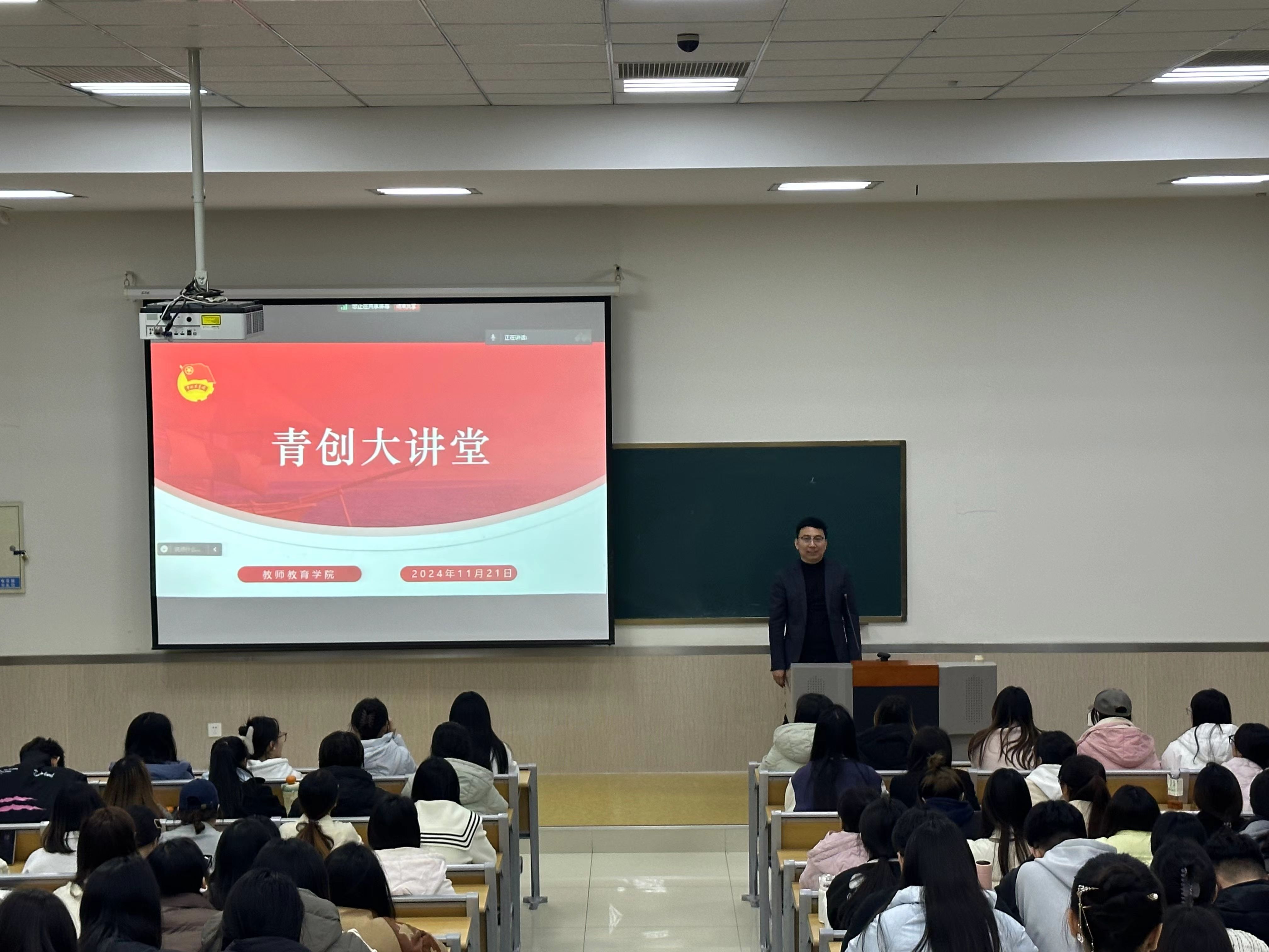 为进一步激发学生创新热情和创业梦想,提升双创育人实效,11月21日,教师教育学院特邀山东省“泰山产业领军人才”,长江学者奖励计划数字化学习创新团队带头人马文博教授做客青创大讲堂,作了题为《创新成就梦想,数字点亮未来》的报告。报告会由该院团委书记徐艳艳主持,来自各学院的200余名同学参会。