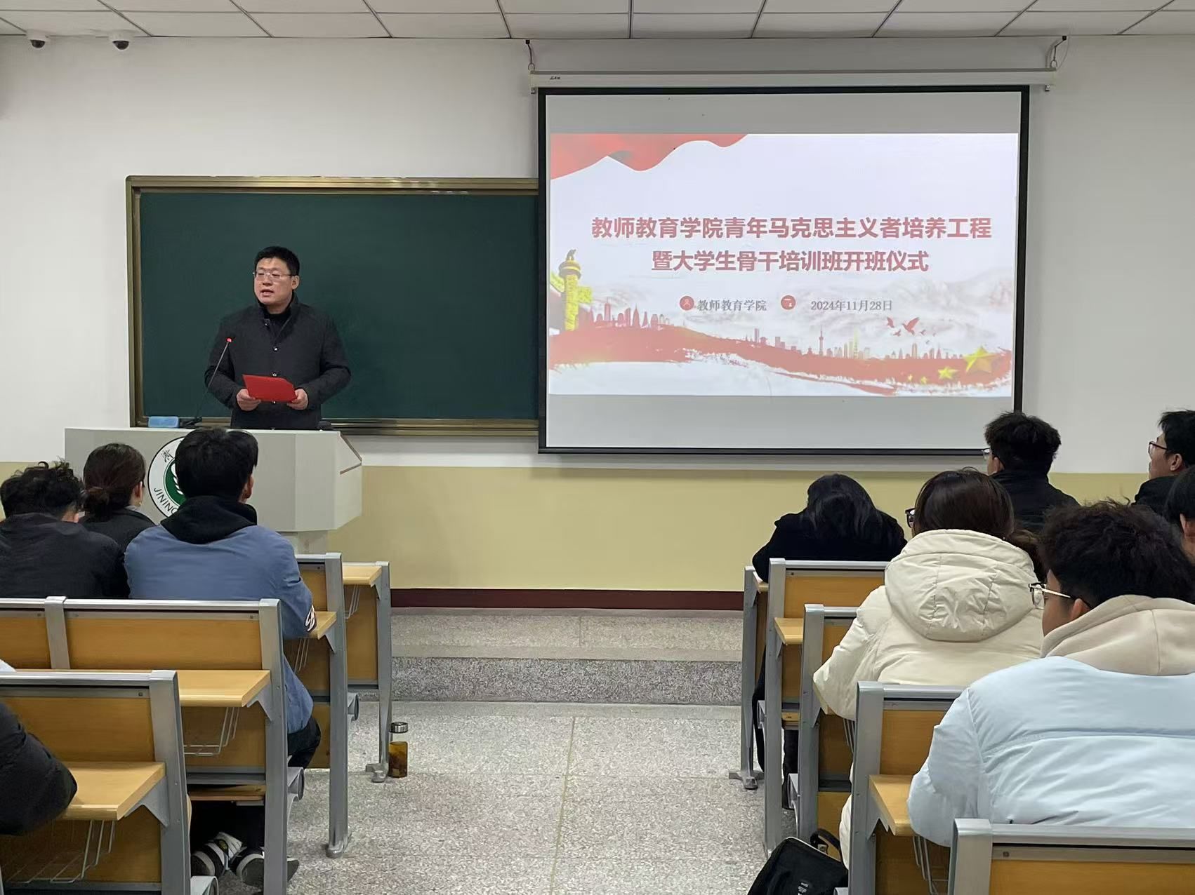 11月28日下午,教师教育学院2024年第二期“青年马克思主义者培养工程”暨大学生骨干培训班开班仪式在2号楼A206举行。教师教育学院党委书记刘勇,党委副书记杜鹃,团委书记徐艳艳,全体辅导员,2024届团学干部及2024级部分学生骨干参会。