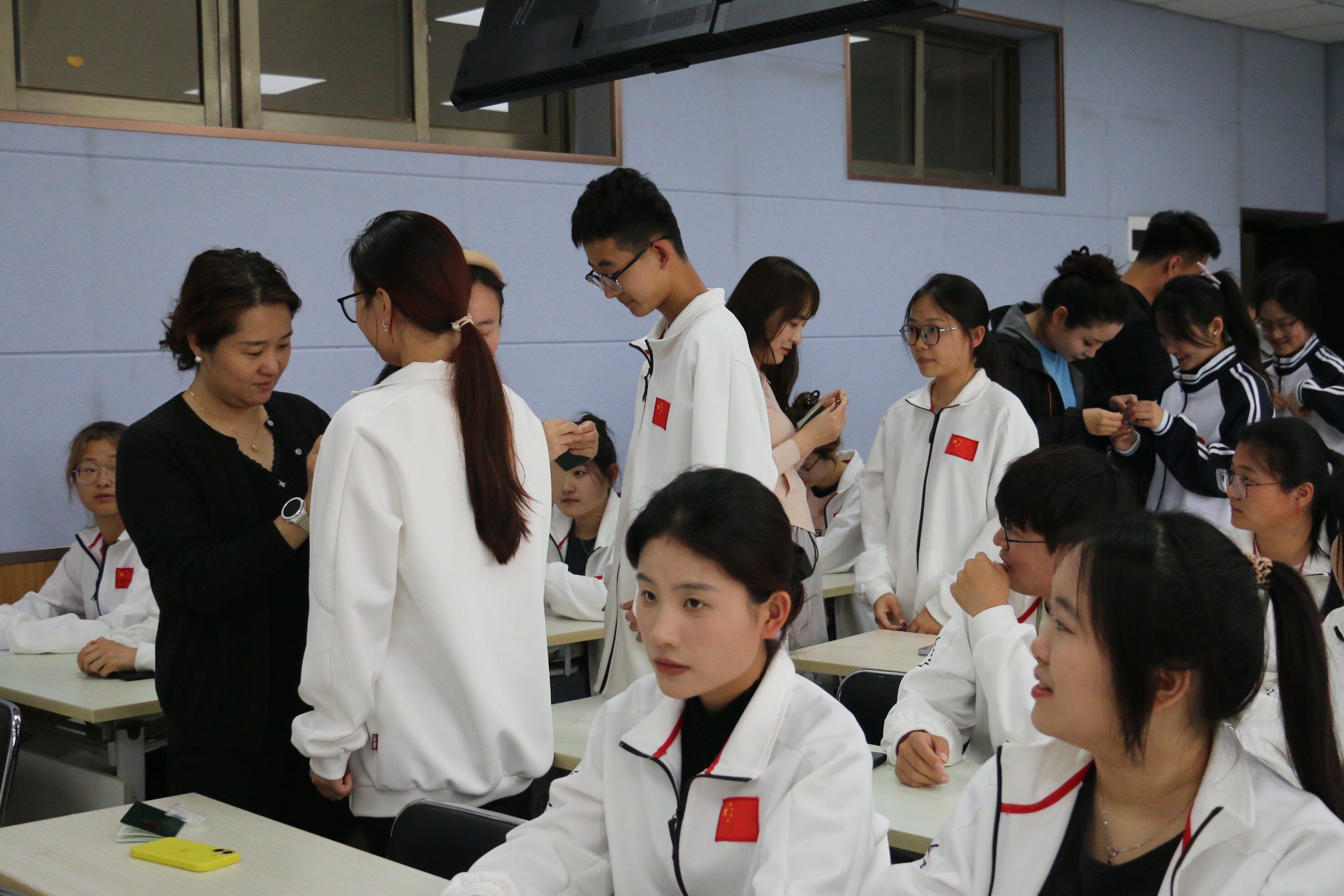 辅导员老师和各支部团支书为新团员佩戴团徽、颁发团员证。团徽闪耀,象征着责任与担当,激励新团员砥砺前行。
