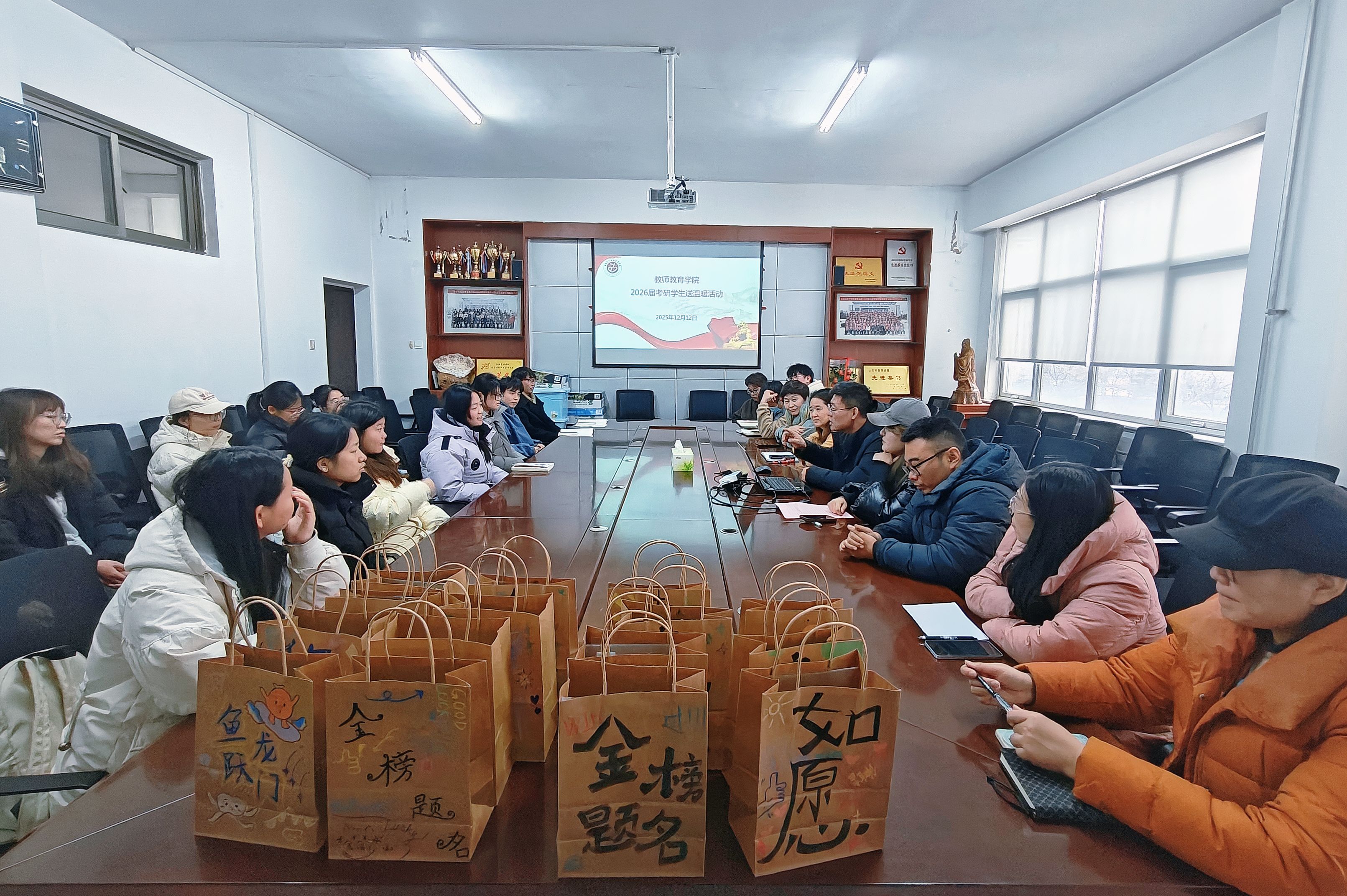为帮助考研学子坚定信心、缓解备考压力,传递学院的温暖与支持,12月11日上午,教师教育学院在2号楼A211教室举办考研加油活动。学院党委书记刘勇、副书记杜鹃、教师代表及全体辅导员到场,为即将步入考场的学子送上诚挚的关怀与祝福,现场气氛温馨,情意真切。